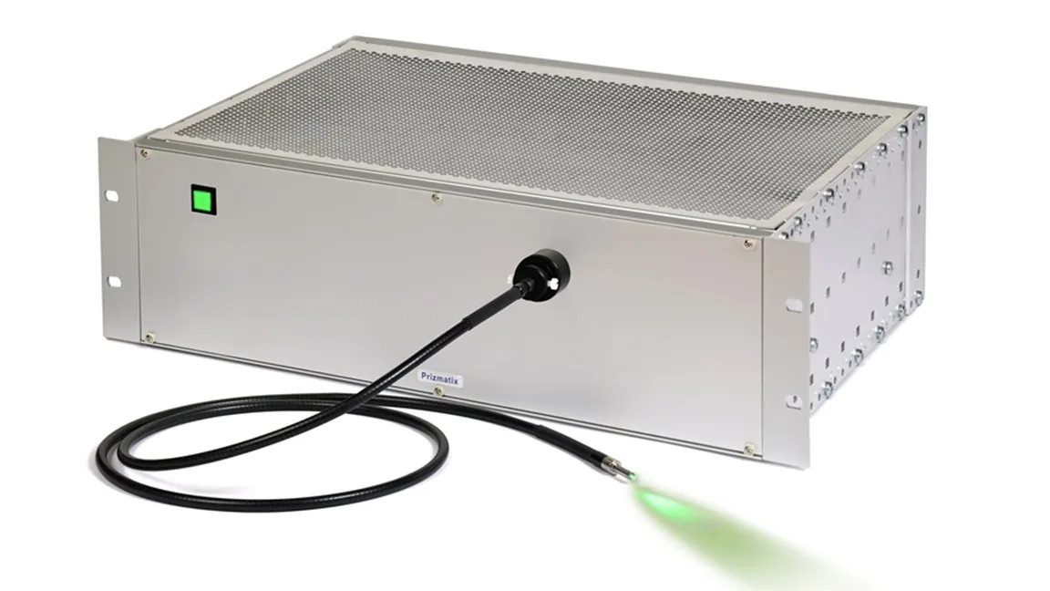 Output options are 3mm or 5mm light guide, SMA or FC fiber optic connectors.